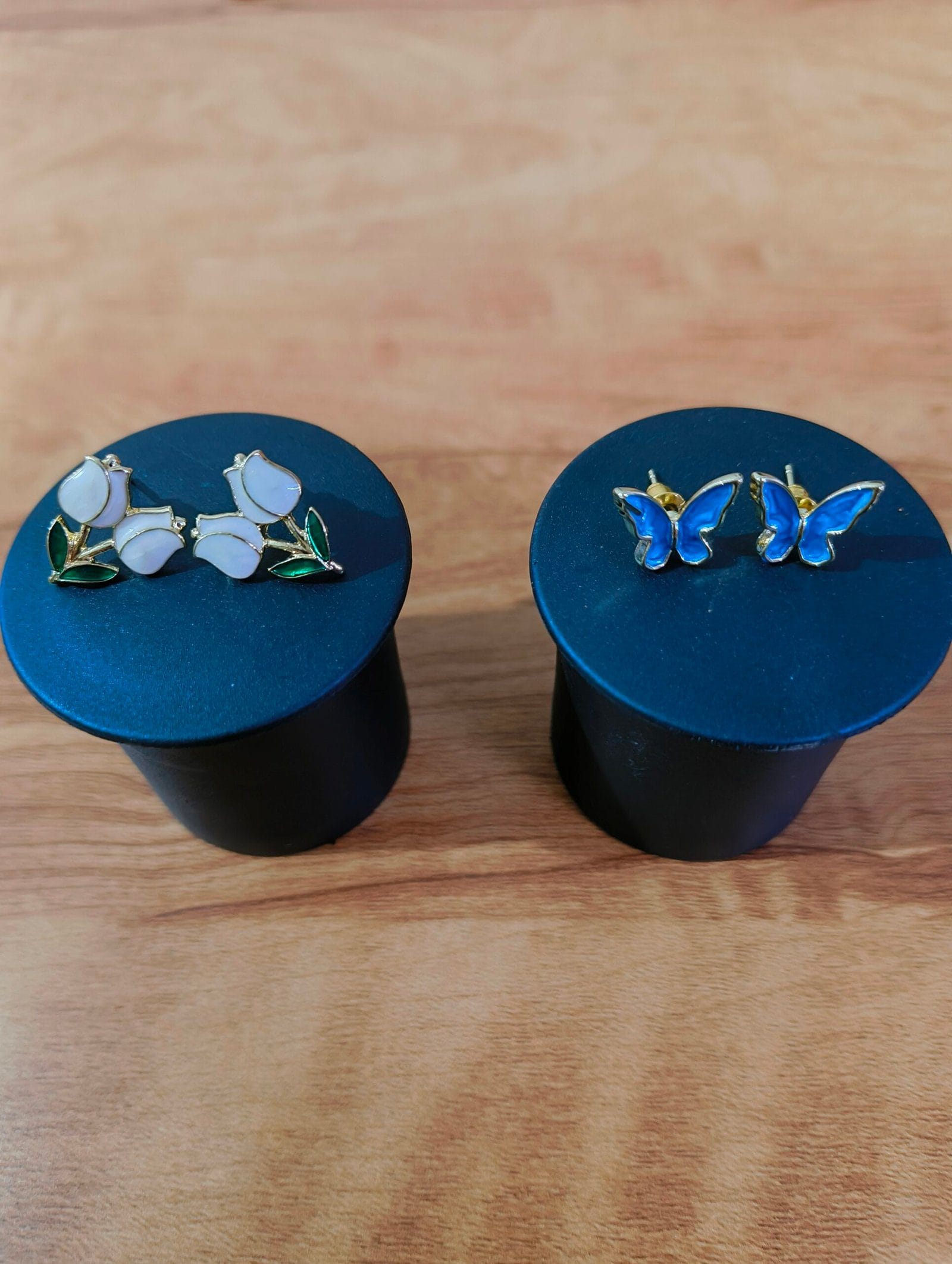 ✔ Gold plated enamel stud earrings combo – Floral & Butterfly design