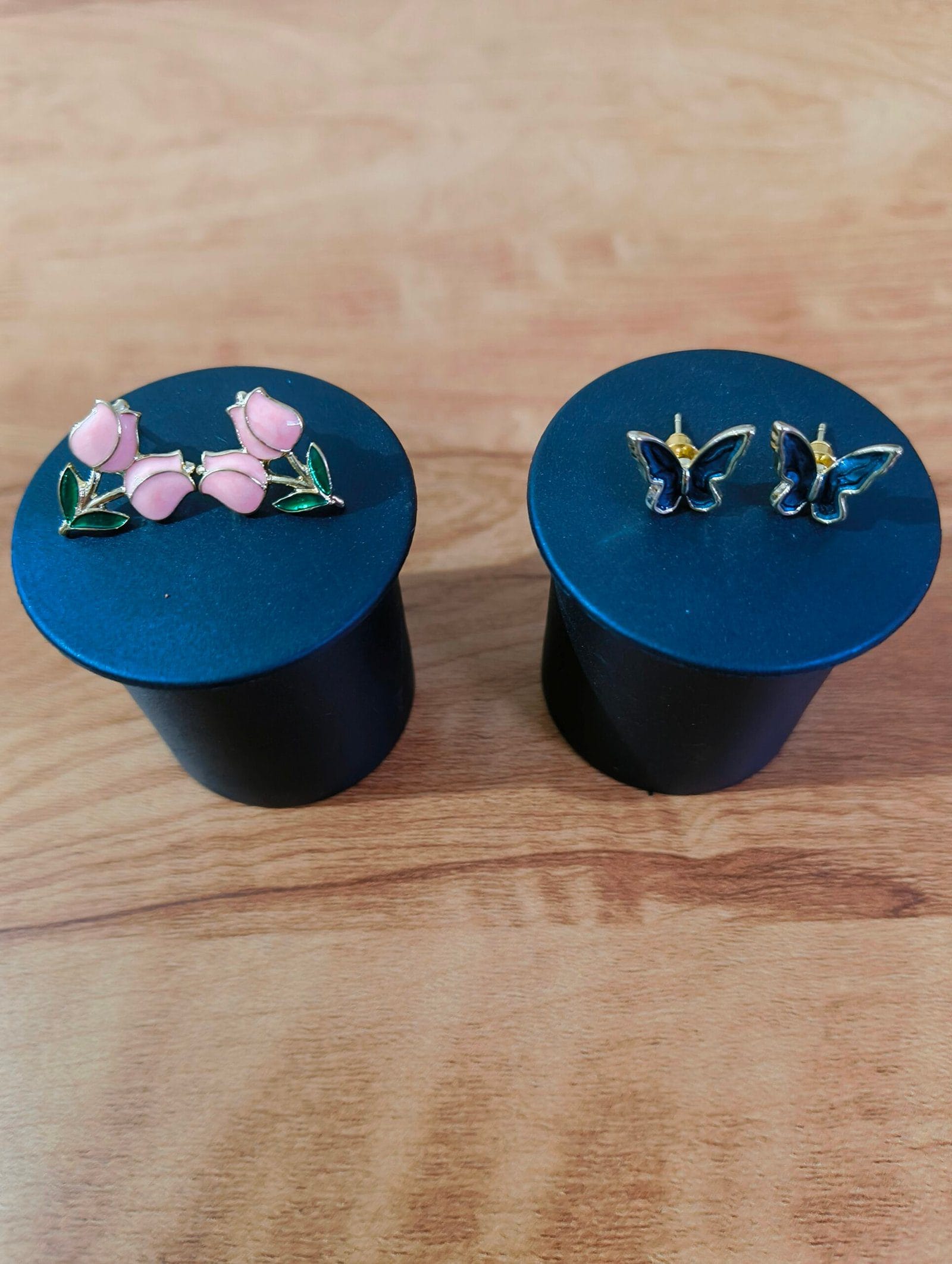 ✔ Combo of 2 gold plated enamel stud earrings – Pink Floral & Blue Butterfly