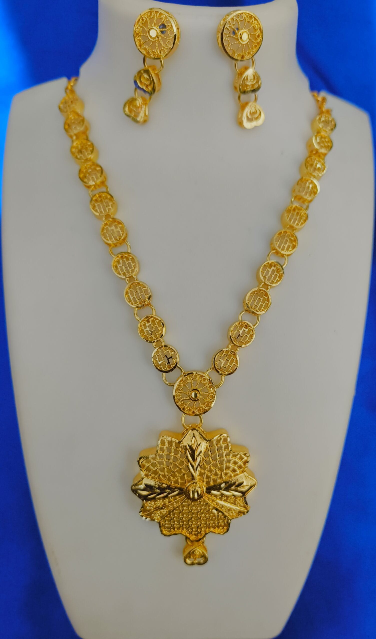 Gold Plated Filigree Necklace Set with Earrings – Traditional Designer Jewellery for Women